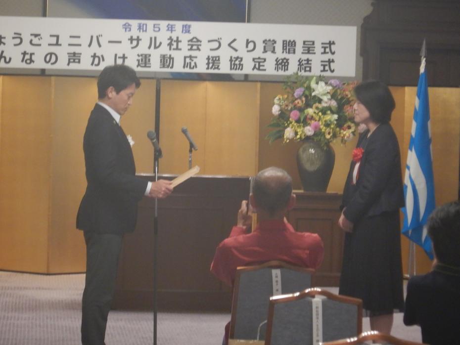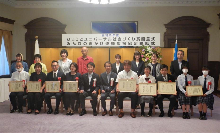 令和5年7月21日(金曜日)に、兵庫県公館にて「令和5年度ひょうごユニバーサル社会づくり賞贈呈式」を開催し、大隅順子さん(宝塚市)、一般社団法人enGrab(尼崎市)、株式会社パイクとそら(芦屋市)の皆さんが「知事賞」に輝きました。