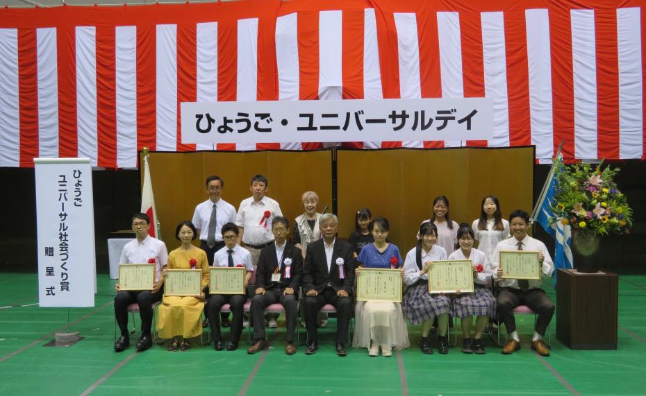 令和7年8月9日(土曜日)、尼崎市記念公園ベイコム総合体育館サブアリーナで開催された「ひょうご・ユニバーサルデイ」の中で、令和7年度ひょうごユニバーサル社会づくり賞の贈呈式を行いました。この度、多田駿介さん(猪名川町)、音遊びの会(神戸市)、放課後等デイサービスるび(神戸市)の皆さんが「知事賞」に輝きました。