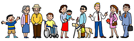 ここでの「ユニバーサル社会」とは、「だれもが暮らしやすい社会」「だれもが参加できる社会」という意味で用いています。