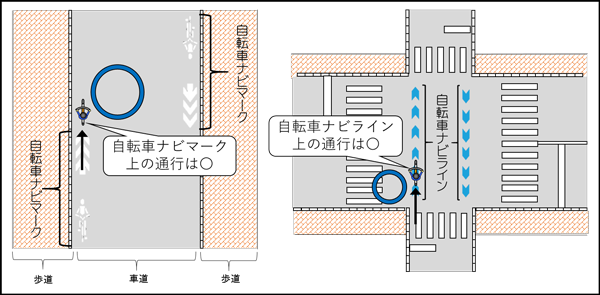 自転車ナビマーク、自転車ナビライン