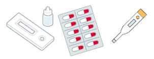 「新型コロナに感染したかも?」と思ったら、医療機関に行く前に、国が承認したキットを用いてチェックし、症状が軽い場合は、解熱剤等で自宅療養も可能です。発熱などの体調不良時に備えて、必要物品等準備をしておきましょう。