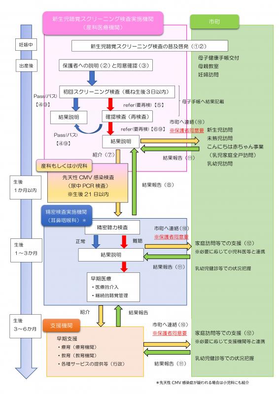 このたび、最新の通知内容を反映し、県下で出生した子どもの検査から支援までの流れを明確にし、産科・小児科・耳鼻科・療育機関・教育機関・市町・健康福祉事務所等関係者の連携のもと、早期発見・早期支援に結びつくよう、有識者の皆様と検討を重ね、内容の見直しを行いました。