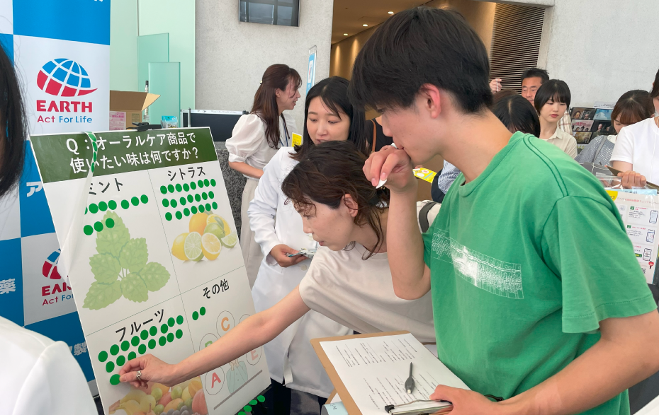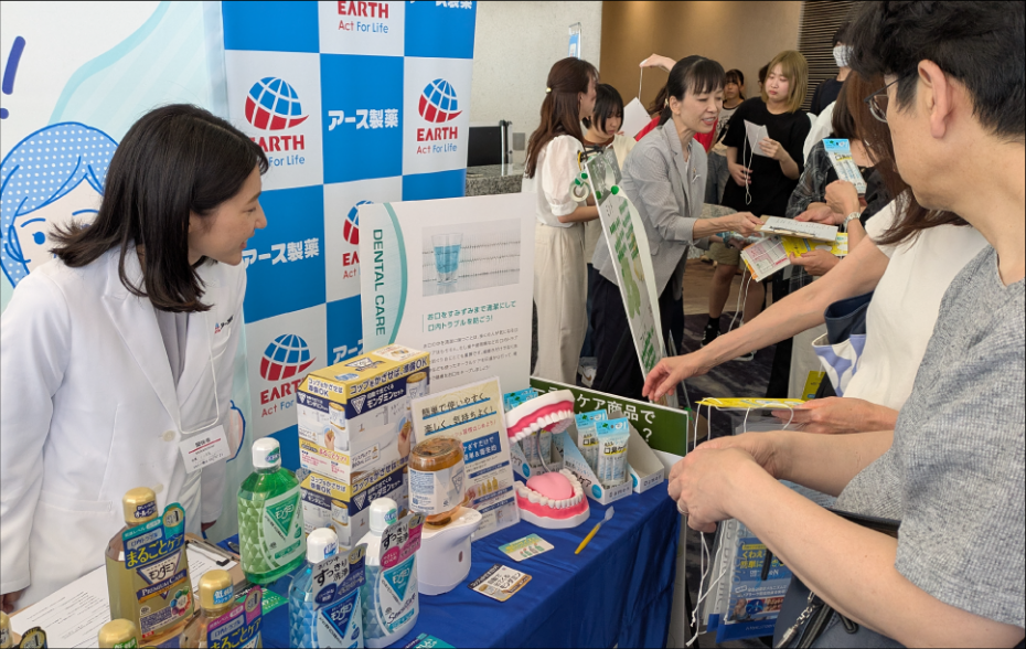 オーラルケアと防災備蓄について、ブースを訪れた方がじっくり考えていました。