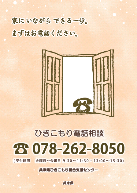 居場所に関するお問い合わせは、ひきこもり電話相談(078-262-8050)、つながらないときは兵庫県精神保健福祉センター(078-252-4980)までお願いします。