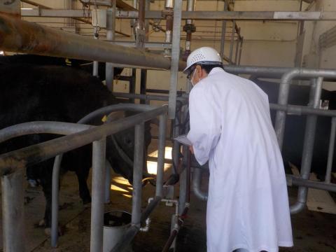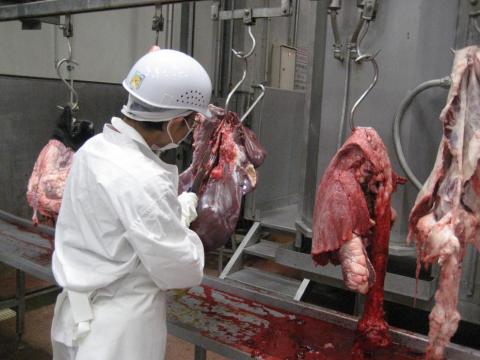 と畜場においては「と畜場法」という法律に基づきと畜検査員(獣医師)が食用に適しているか一頭ごとに検査を行います。