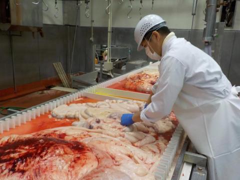 頭部の肉や舌、肺、心臓、肝臓などの臓器とリンパ節の検査をします。