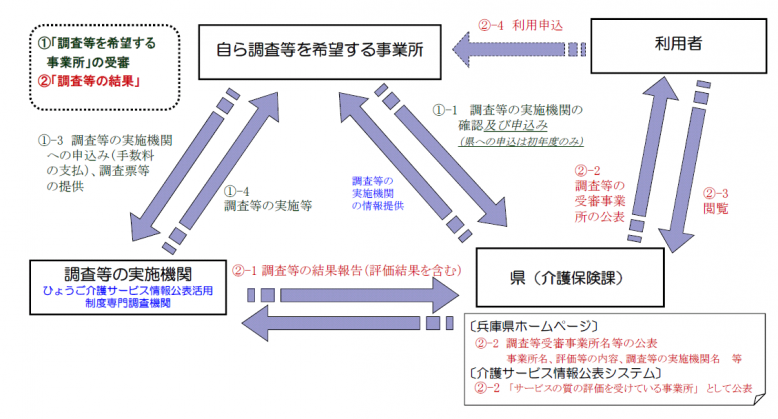 また、自ら調査を希望する事業所については、事業者及び利用者の双方にとって、真に事業者選択に資する制度(利用者による主体的な介護サービス事業所の選択)となり、また事業者自らが質の向上に活用(介護サービス事業所のサービス改善の取組の促進)できるよう、別途調査等を受けられる仕組みを構築しました。