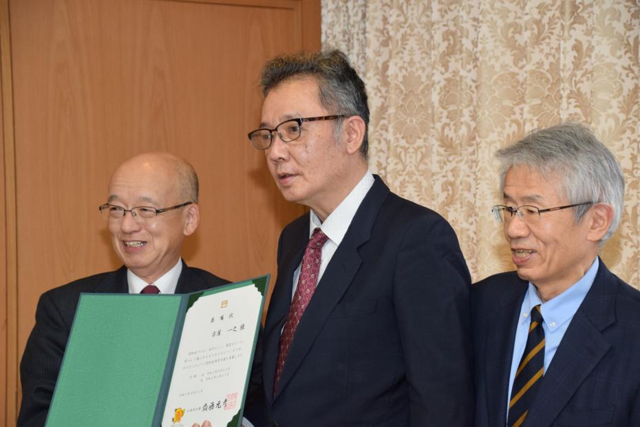 片山副知事(左)とひょうご認知症希望大使の古屋氏(中央)、大使の活動パートナーの北村氏(右) |