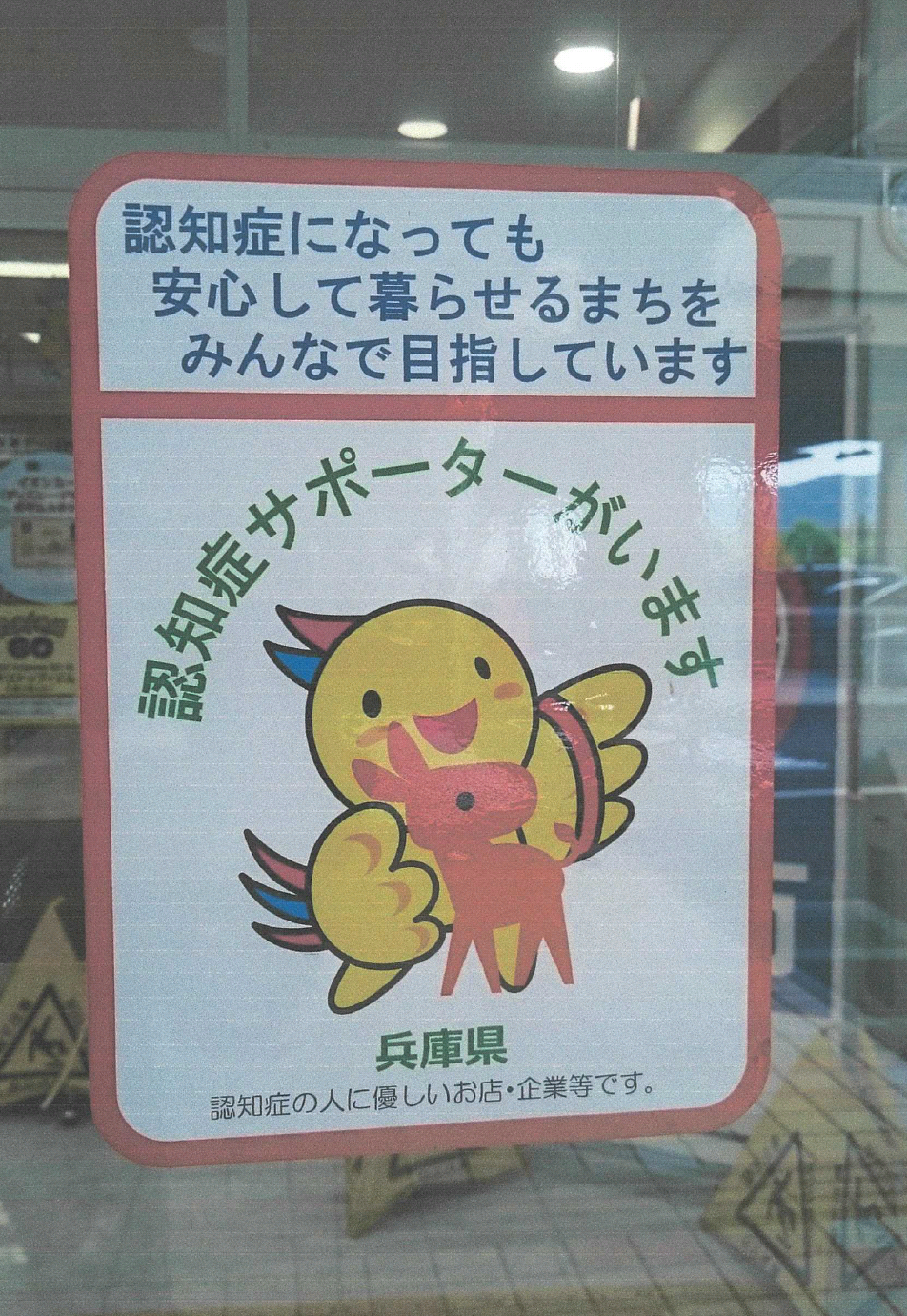 株式会社やまねメディカル(総合ケアセンター神戸・垂水・明石朝霧)は「地域包括ケア」を推進する福祉拠点として、地域社会に貢献していくために、認知症の人を介護する従業員等への支援として「認知症サポーター養成講座」を受講し、「ひょうご認知症サポート店」のステッカーを出入り口に貼り周知しています。地域により密着した施設を目指し、これからも認知症の人とご家族の方に安心して頂ける施設として取組みを続けていきたいと思います。