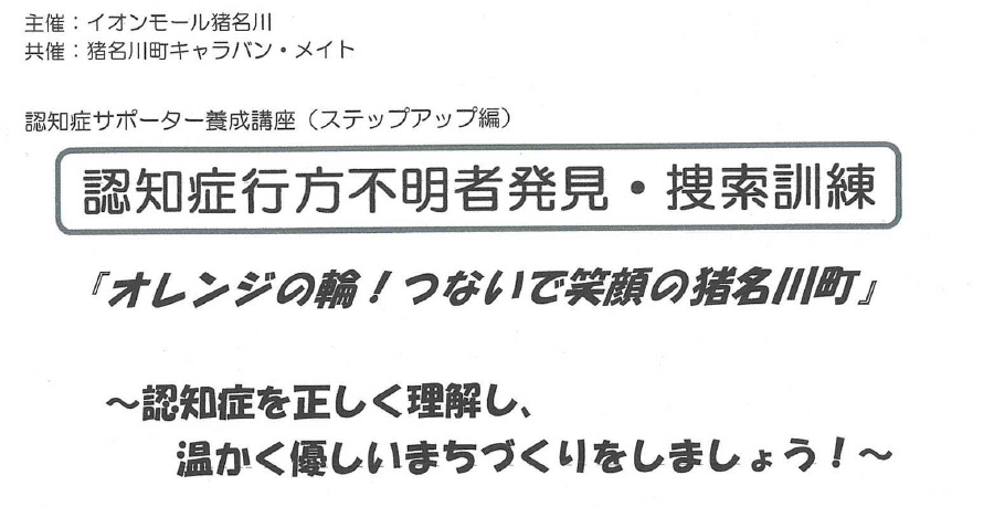 施設内に出店している店舗全体によびかけ「認知症サポーター養成講座」の継続開催していることに加え、猪名川町の見守り・SOSネットワークにも協力し、平成29年9月には「行方不明者発見・捜索訓練」を開催しました。これからも、認知症の人と家族の方に安心して頂ける施設として取組みを続けていきたいと思います。