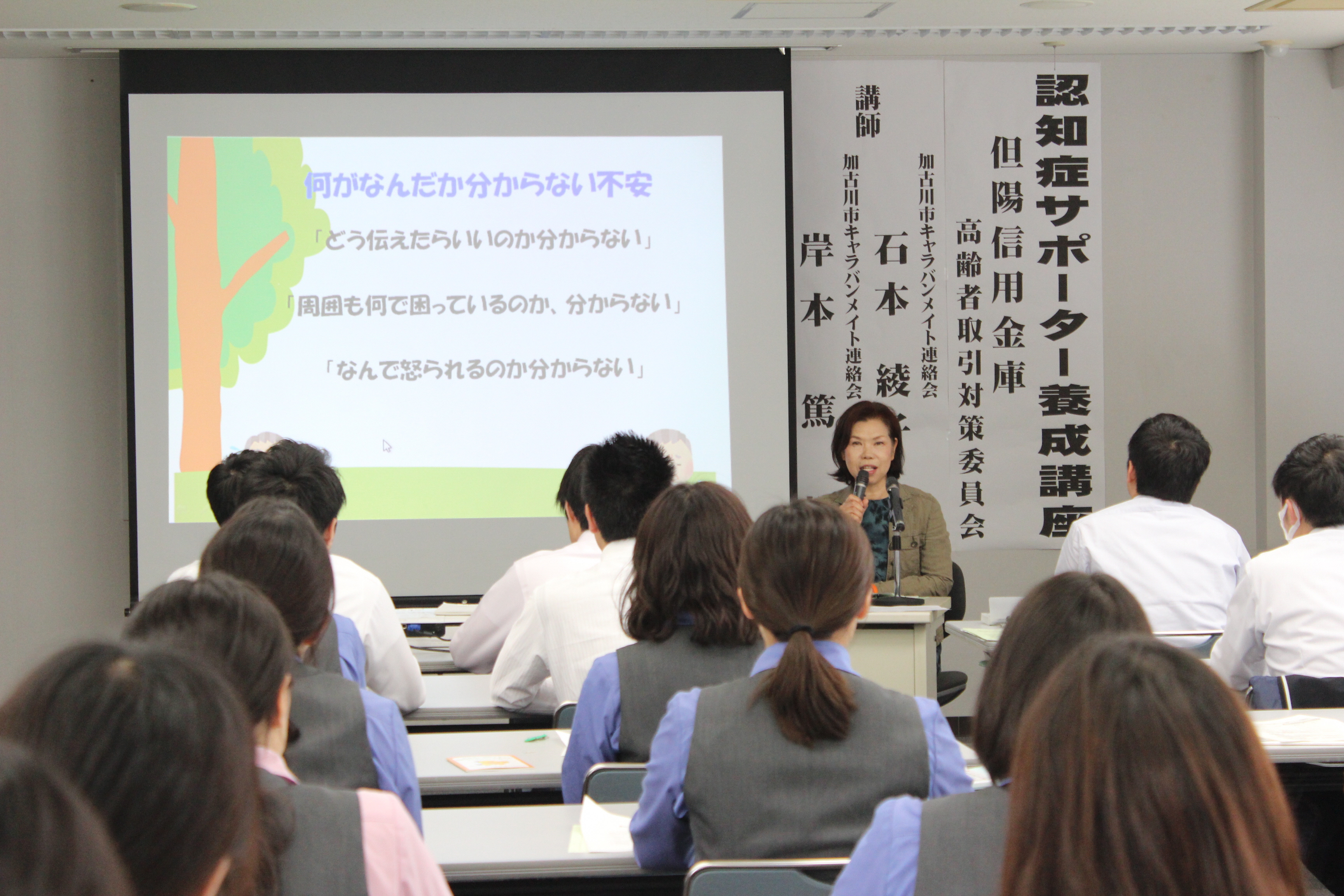 株式会社ケーエスケーでは、キャラバン・メイト(兵庫県内13名:令和2年7月現在)が、各市町村の要請に基づいて地域の小中学校や社会福祉協議会との共催イベントで講師を務め認知症サポーターの養成に取り組んでいます。 また、社内では既にほぼ全員の営業担当者が認知症サポーター養成講座を修了、現在では年に一度新入社員対象に研修を開いて継続的な養成に努めています。これからも地域に寄りそう、健康スペシャリスト企業として、認知症の方やそのご家族が安心して暮らせるまちづくりを支援していきます。