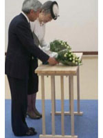 4月23日、兵庫県公館(神戸市中央区)で、知事から復興概況と県勢概要をご聴取されたほか、県内の震災犠牲者の名簿を供えた祭壇にご供花されました。