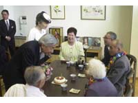 同23日にご訪問された県営脇の浜高層住宅10号棟・コレクティブハウジング(神戸市中央区)では、協同生活室で入居者の誕生会をご慰問になりました。