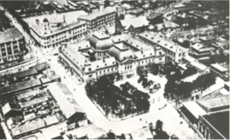 この建物の一番の特徴は、左右対称で、中庭を中心に回廊式となっており、その中庭の南側に正庁、そして、北側に議事堂(第2代)の2つのドーム(丸屋根)が設置されていたことです。
