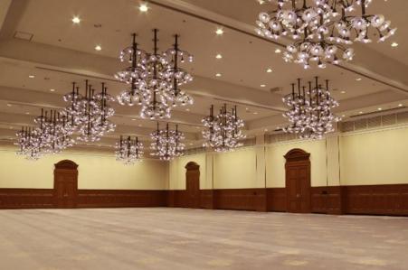 シャンデリアは県花“のじぎく”の花となっており、1基のシャンデリアに144個の花の電灯があり、全部で10基、合計1,440個の花の電灯があります。