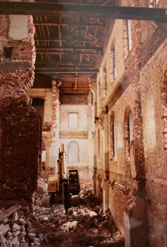 内壁の赤レンガは取り除かれましたが、外壁は裏側から鉄筋コンクリートで補強されていることが分かります。
