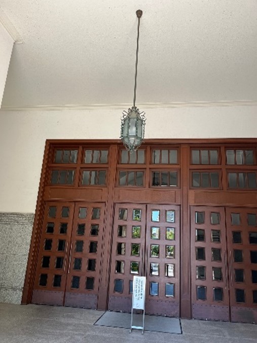 現在、壁の中の赤レンガを見ることはできませんが、改築時に撤去した赤レンガを東庭園のベンチとして再利用しており、創建当時の外壁の面影を感じていただくことができます。