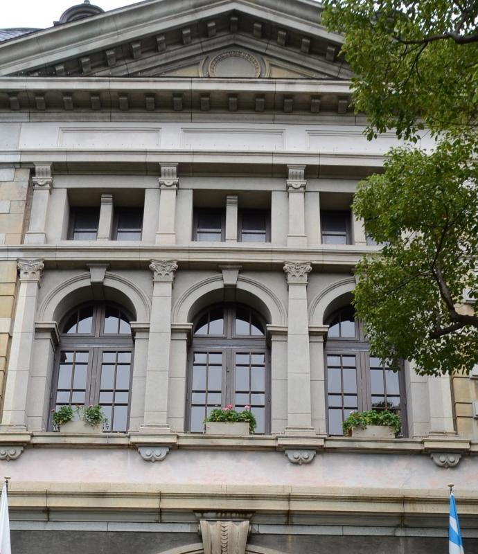 <南玄関正面>ルネサンス様式 半円アーチ型の窓