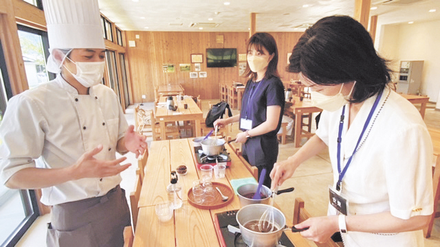 丹波の食や文化を学び、地域が誇る高級品「丹波大納言小豆」と旬の果物を合わせた菓子作りを体験。 【電話】0795-74-3030(ゆめの樹野上野) |