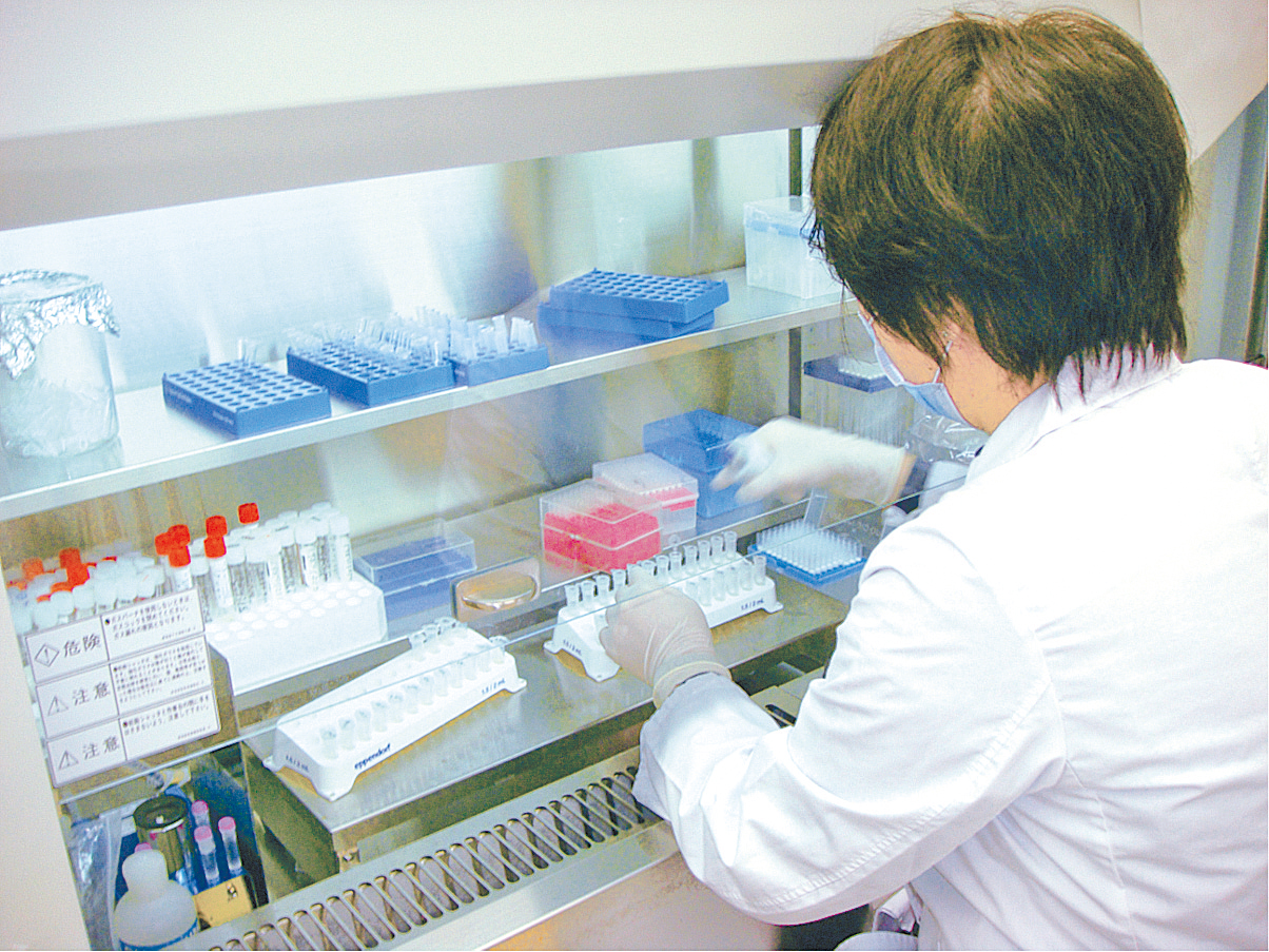新型コロナウイルスRNA遺伝子の抽出作業の様子。