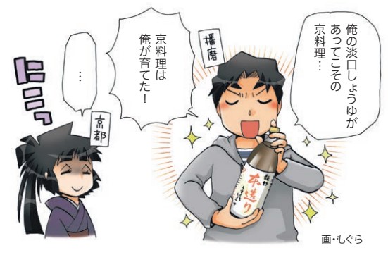 江戸時代、龍野のしょうゆ醸造業者の発案で、しょうゆもろみに甘酒を加えてみたら、なんと不思議、色が薄くて香りの良い「淡口しょうゆ」に。実はこれ、龍野を流れる揖保川の水質が軟水だったからこそのミラクルだそう。こうして龍野で生まれた淡口しょうゆは、その後京都や大阪で大ヒット。今やなくてはならない存在です!