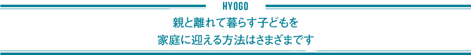 一口に里親といっても、一定期間家庭で養育する「養育里親」、法的にも親子関係になることを前提とした「養子縁組里親」のほか、児童養護施設の子どもを週末のみ預かる「週末里親」、正月や夏休みに受け入れる「季節里親」などいろいろな種類があります。また、里親は必ずしも子どものいない夫婦である必要はなく、独身の人も、子育て中の人も、要件を満たせばなることができます。10月は里親月間です。さまざまな事情で家族と暮らすことができない子たちを温かく迎え入れ、心身の成長を支える存在になりませんか。(県児童課)