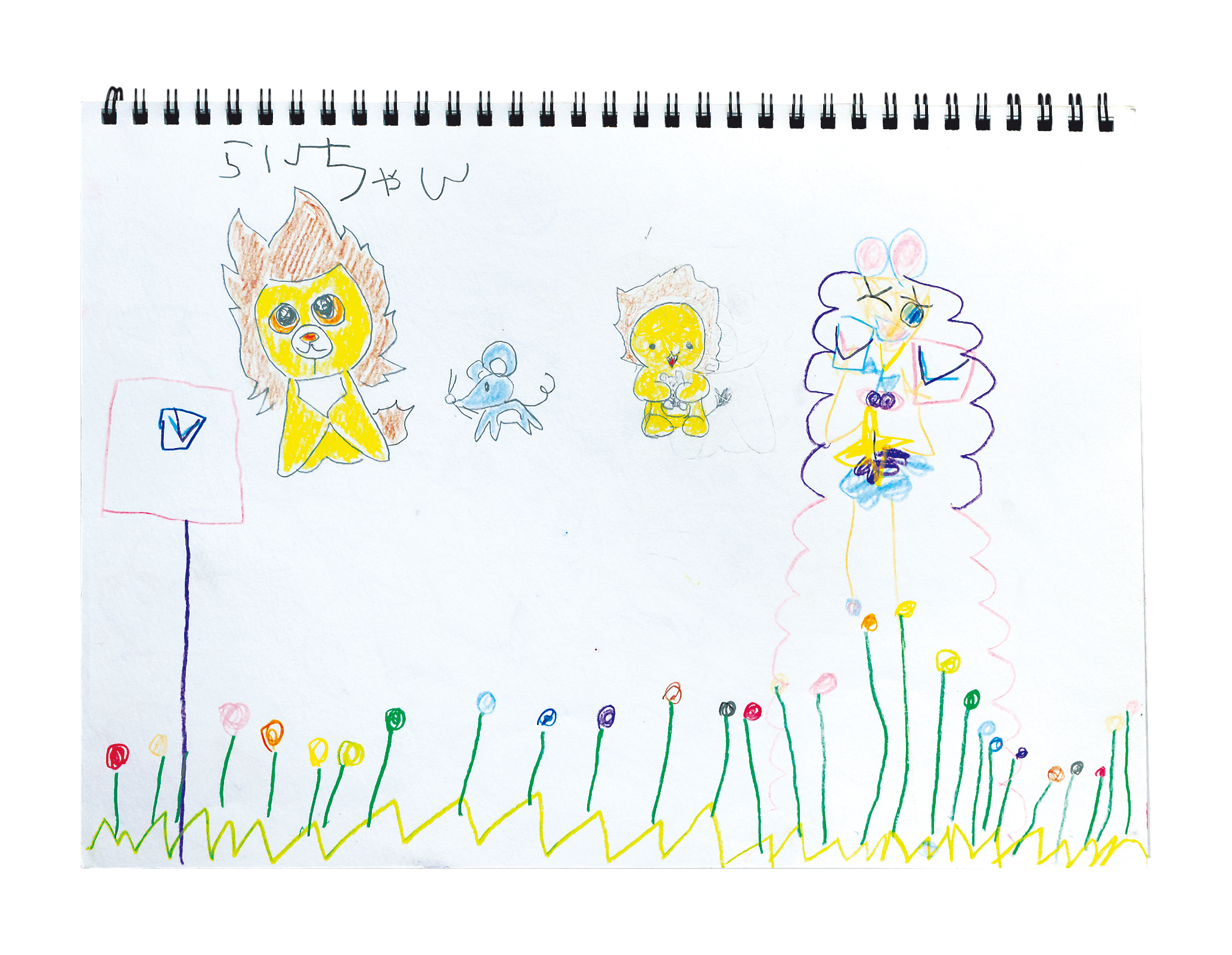 季節里親で受け入れた子と北嶋家の子たちが一緒に描いた絵。 |