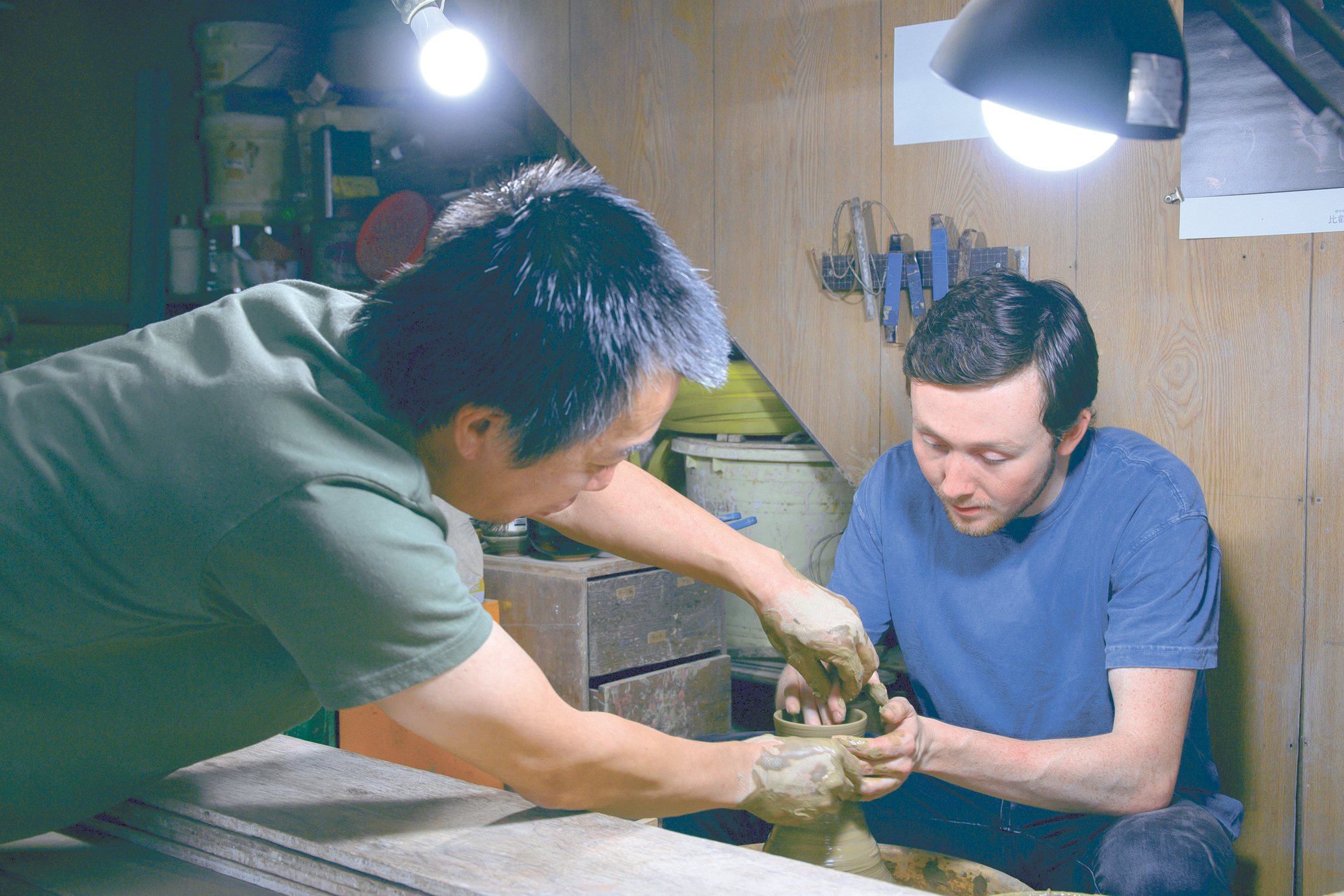 陶芸体験では窯元が丁寧にろくろの使い方を教えてくれます。