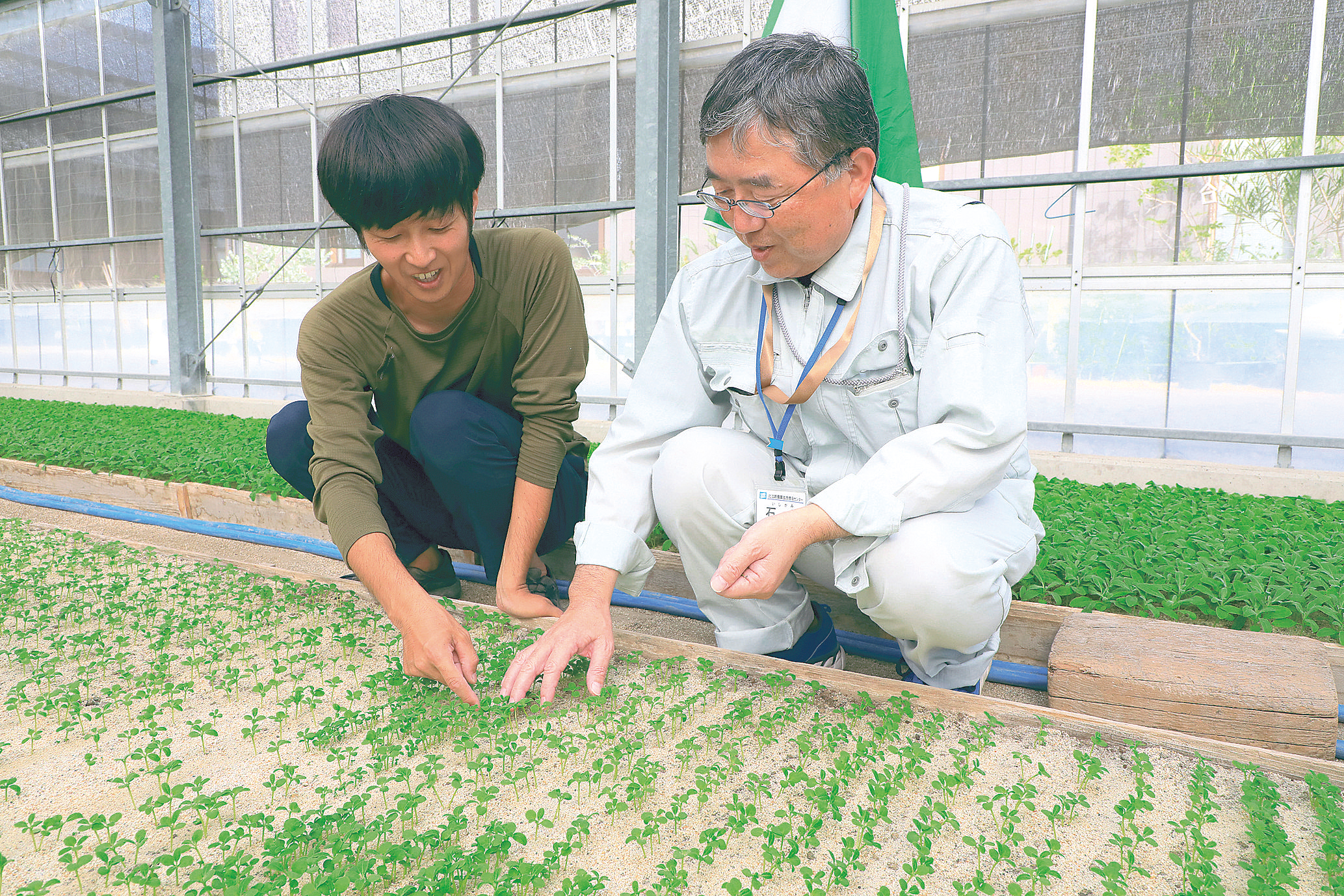 農業改良普及センター職員は、農家を巡回し、相談や指導に当たります(右側が石上さん)。
