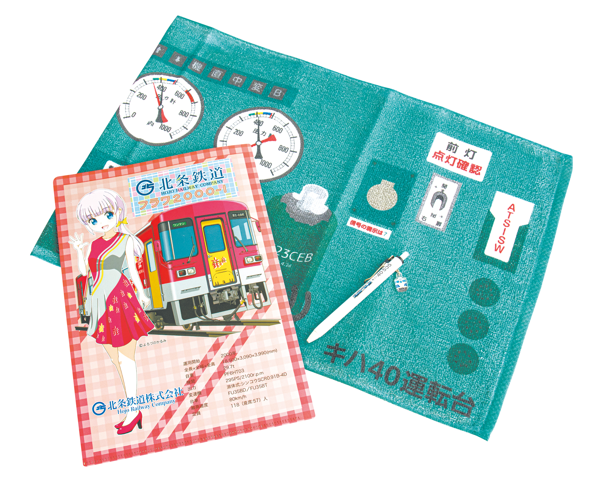北条鉄道は小野市の粟生駅と加西市の北条町駅を結ぶ全長13kmのローカル線。キハ40系運転台タオル、キハ40系ボールペン、クリアファイルをセットにしました。