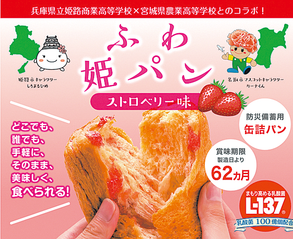 宮城県農業高校と共同開発した災害食(パンの缶詰・真空パックご飯)や防災教育絵本「みらいへつなぐひかり」など、プロジェクト内容を口頭で説明します。災害食の試食販売も。