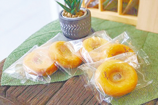 赤穂市の障害福祉サービス事業所「赤穂精華園」による、豆腐を丸ごと使った焼きドーナツ。豆腐ならではのしっとりした食感が楽しめます。5個入り800円。インターネットでも販売しています。