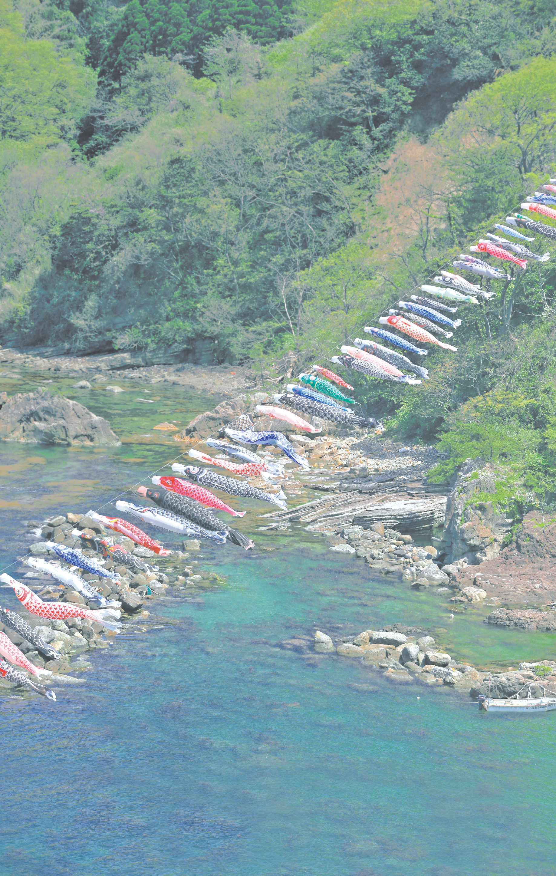 香美町香住区の鎧漁港ではゴールデンウイーク期間中、約90匹のこいのぼりが上空を彩ります。1991(平成3)年に、地元の子どもたちの健やかな成長を願い、入り江をまたいで張ったワイヤに家々から持ち寄ったこいのぼりを掲げたのが始まりです。今では高台にあるJR「鎧」駅に大勢の見物客が降り立ち、青空を気持ちよさそうに泳ぐ景色を楽しんでいます。今年は4月27日(土曜日)~5月6日(月・休)※1に掲揚します。鎧の集落は道幅が狭いので、車で来られる方は隣の「餘部」駅か「香住」駅に駐車※2し、鉄道を利用してください。(前鎧区長 藤原政信さん)