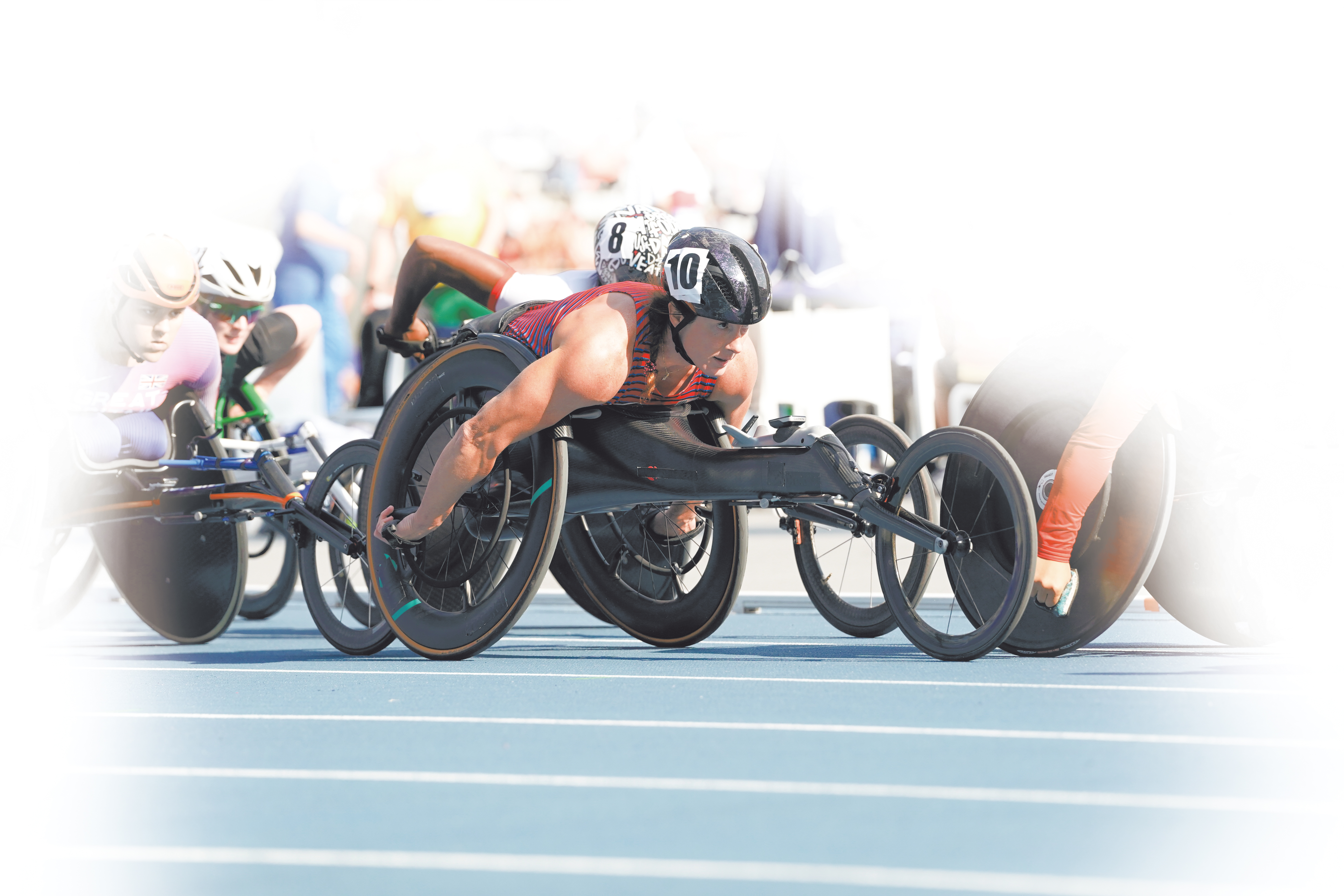 競技用の車いすや義足には軽くて丈夫なカーボン繊維強化プラスチックが使われるなど、用具の進化は目覚ましく、それに伴い各種目の記録も向上しています。車いすや義足を体の一部のように使いこなすアスリートに注目です。