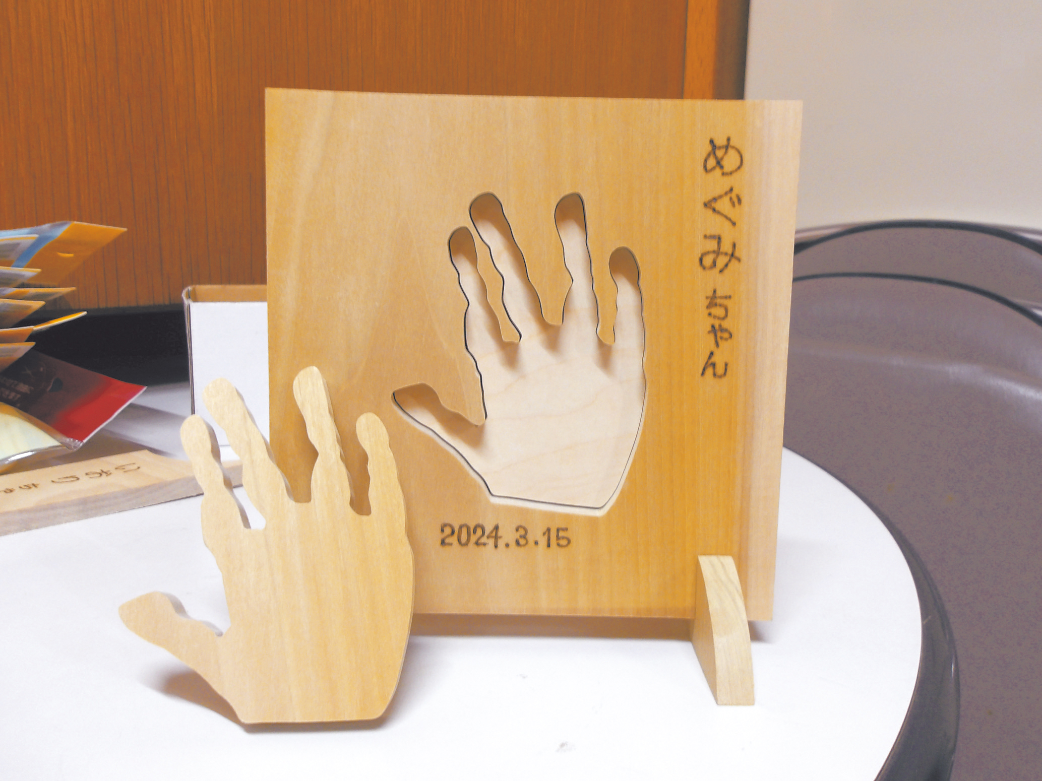 手形を刻んだ木の盾を制作 子どもの成長の記録に
