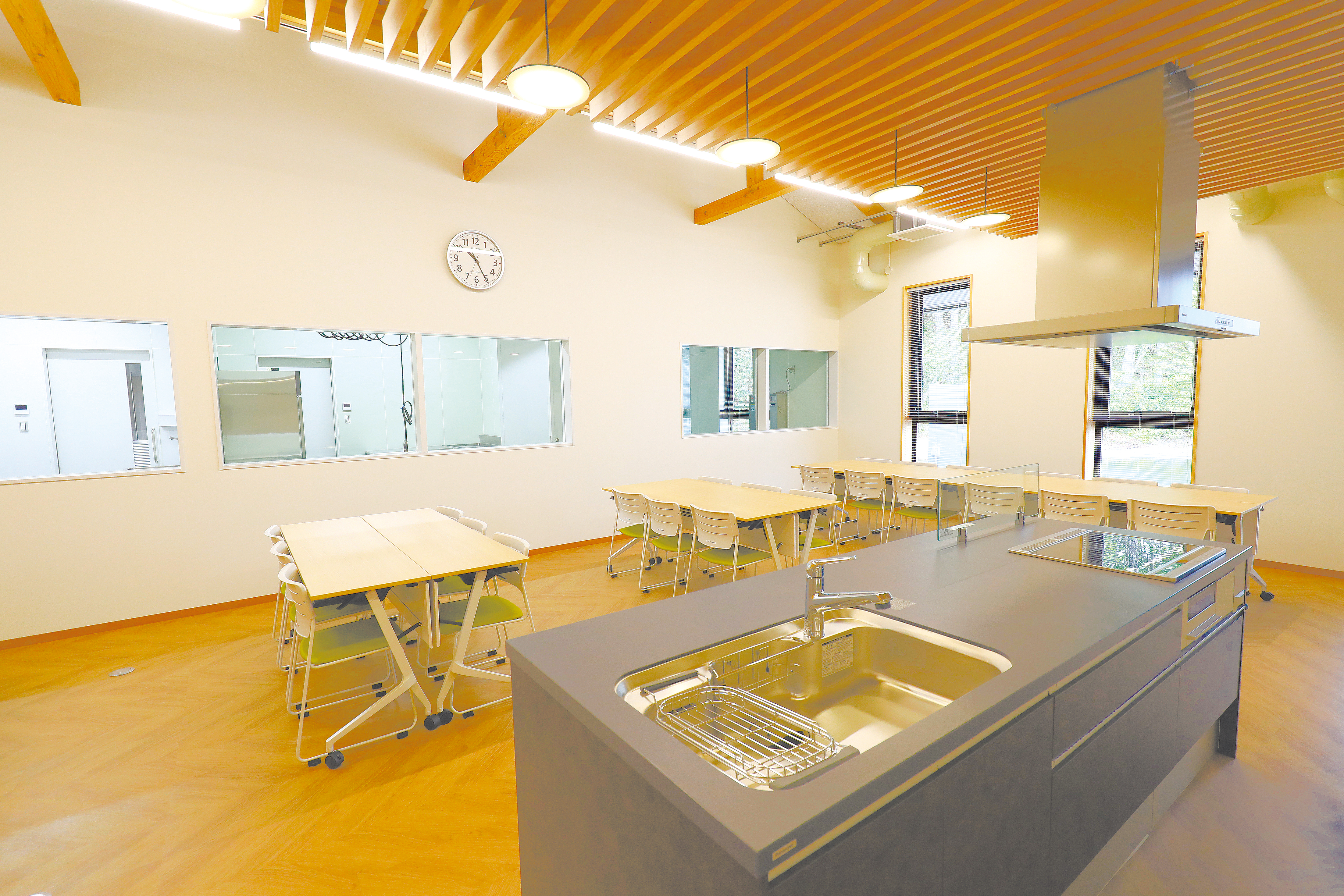 会議室は流し台を備え、ガラス張りのジビエ処理加工室も併設。