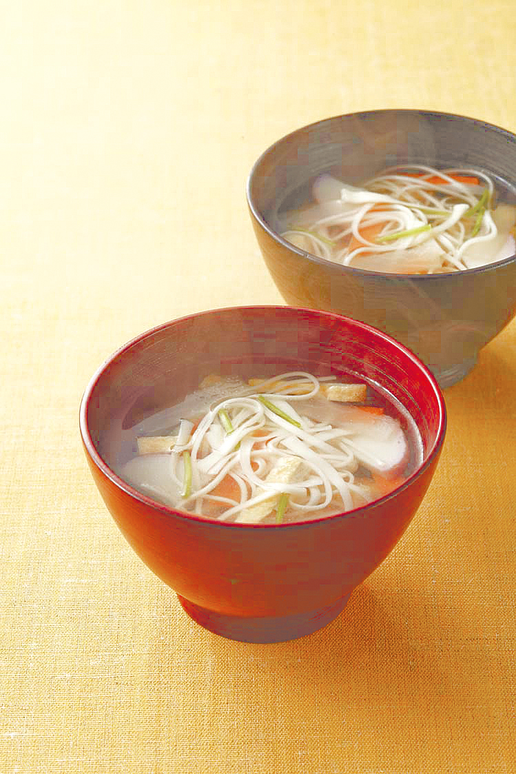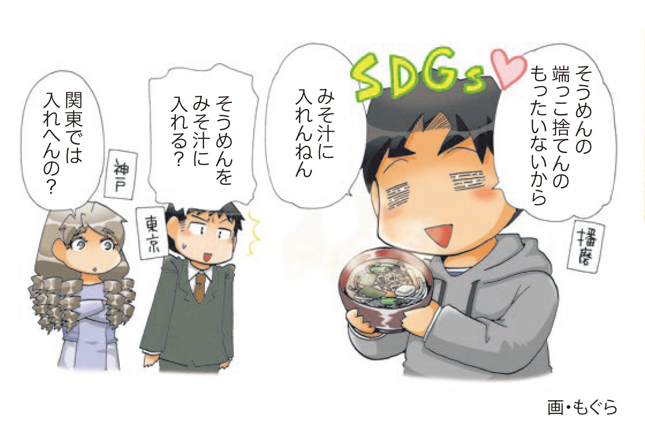 「揖保乃糸」に代表される播州地方の手延べそうめん。その生産過程で切り落とされた端っこは「ばち」と呼ばれ(三味線の「バチ」に似ているからとか)、地元ではみそ汁やすまし汁の具として使われているそう。ゆでずにそのままだし汁に入れ、淡口(うすくち)しょうゆで味を調えれば「ばち汁」の完成です!