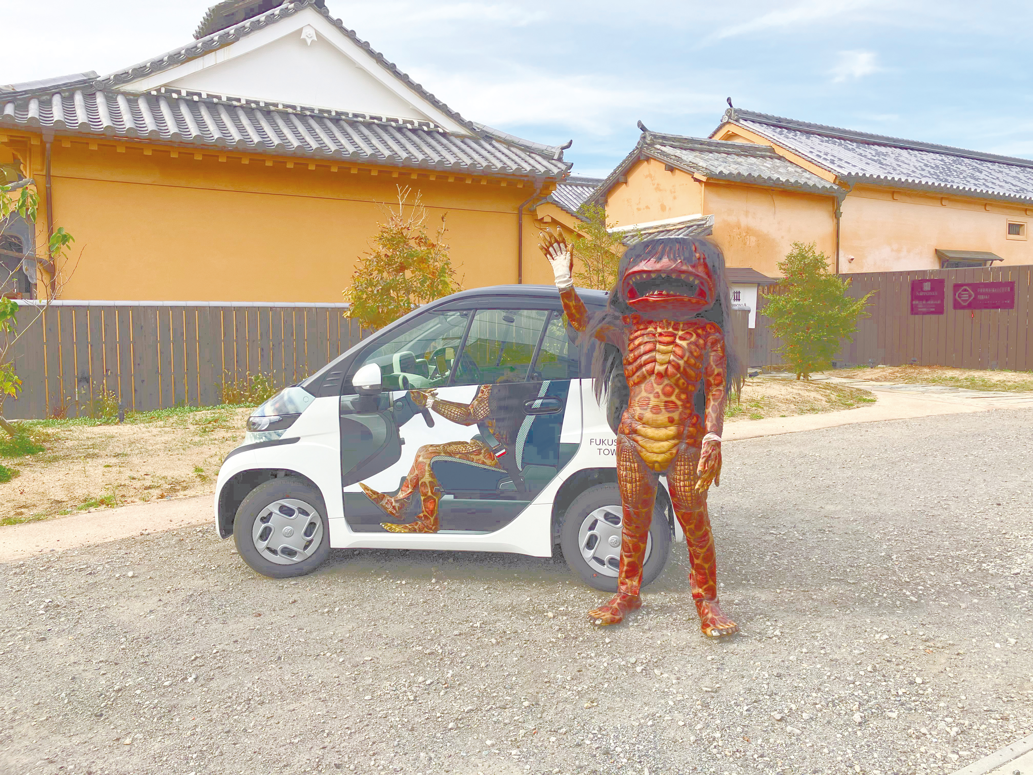 2人乗りの「妖怪ガジpod」。予約は神崎交通(株)【電話】0790-22-3322へ。