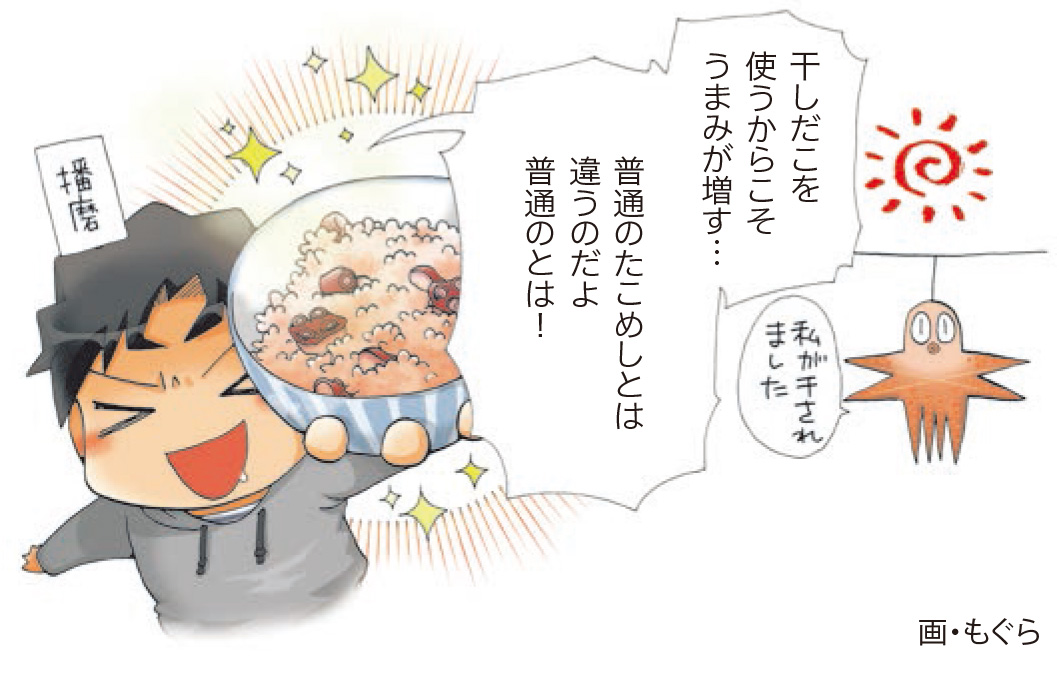 タコが足を広げて干された姿が、播磨灘の夏の風物詩としておなじみの「干しだこ」。その干しだこを使ったたこめしは、明石で古くから受け継がれてきた浜の味。炊く前に軽くあぶるのもポイントで、香ばしさもうまみも歯応えも「一度食べたら普通のたこめしでは物足りなくなる」くらいだとか。