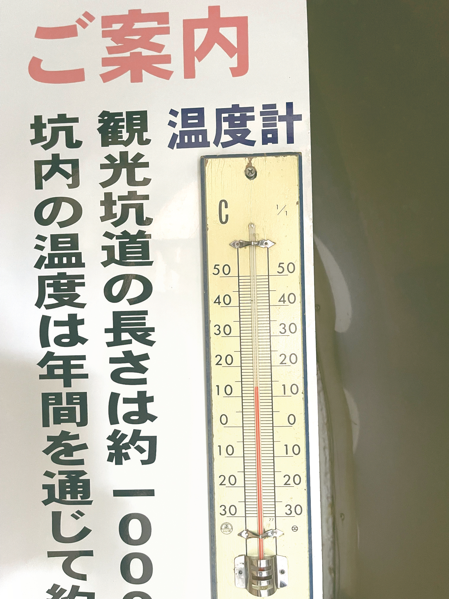 坑内は常に13度。見学には1時間かかるので、冷えが気になる人は羽織り物の用意を。