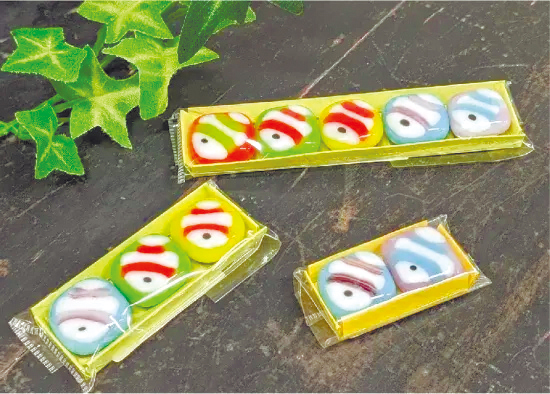神戸市垂水区の障害福祉サービス事業所「ゆとり作業所」が、一枚のガラスから一つずつ手作りしたマグネット。ぷっくりとしたフォルムが特徴です。1箱(5個入り)550円。インターネットでも販売しています。