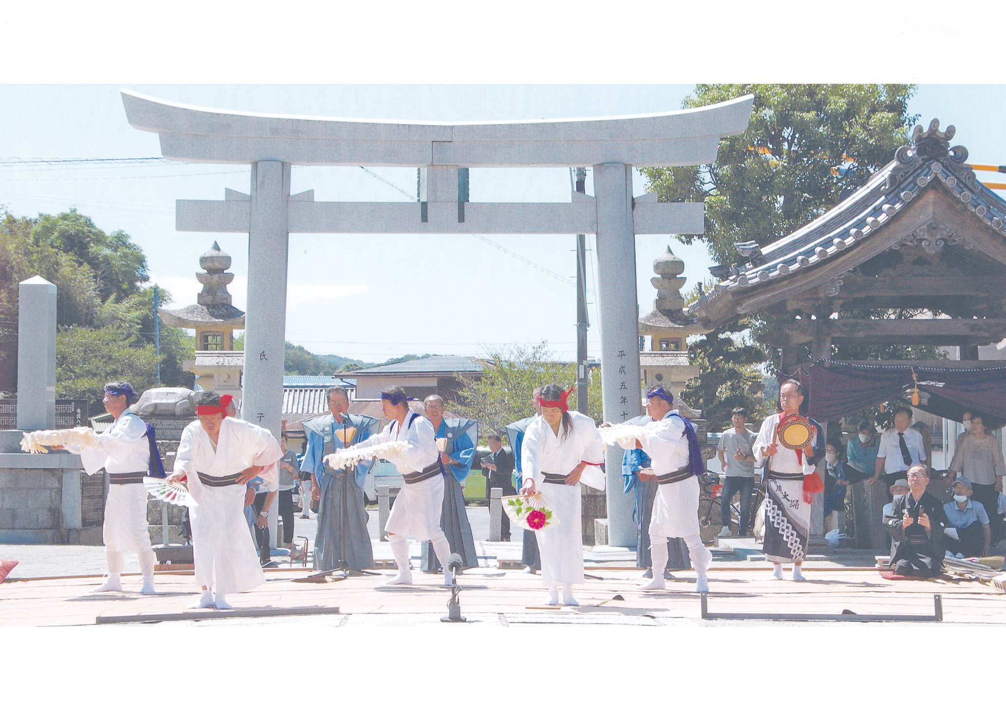 南あわじ市の阿万地区に伝わる「阿万の風流大踊小踊」は、毎年9月に行われる亀岡八幡神社の秋祭りで豊作を祈願して奉納される伝統芸能です。神前で雨乞いし、願いがかなったことへの願ほどきとして始まったと伝わります。大踊は室町時代、小踊は江戸時代中期と、起源の異なる2種の踊りを、保存会に所属する地域住民がおはやしと歌に合わせて交互に行います。大踊は終始同じ衣装でゆったりと、小踊は演目により衣装を変えながら軽快に踊るのが特徴です。通しで30分ほどの行事を、今年は9月15日(日曜日)に実施します。2022(令和4)年、ユネスコ無形文化遺産にも登録された伝統の踊りを見に来ませんか。(阿万風流踊保存会 佐渡達史さん)