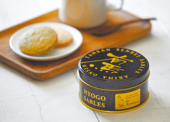 障害福祉サービス事業所「むぎのめ作業所」(川西市)と「友が丘作業所」(神戸市須磨区)が、神戸洋藝菓子ボックサンと有馬温泉観光協会等の協力を得て製造。炭酸せんべいのフレークが練り込まれています。プレーン、抹茶各2枚入り756円。