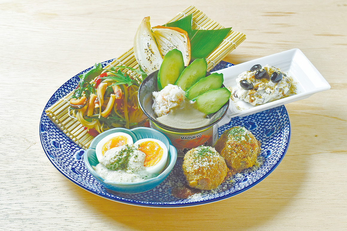 旬の丹波黒枝豆のほか、香住ガニ、淡路島産たまねぎ、もち麦、神戸ビーフと、五国の味覚をぜいたくに取り入れた「五国おばんざい盛り合わせ」がひょうご五国ワールドに期間限定で登場。他の開催店舗でも、朝倉山椒や丹波篠山市産のほうじ茶などの県産食材を使ったメニューが味わえます。