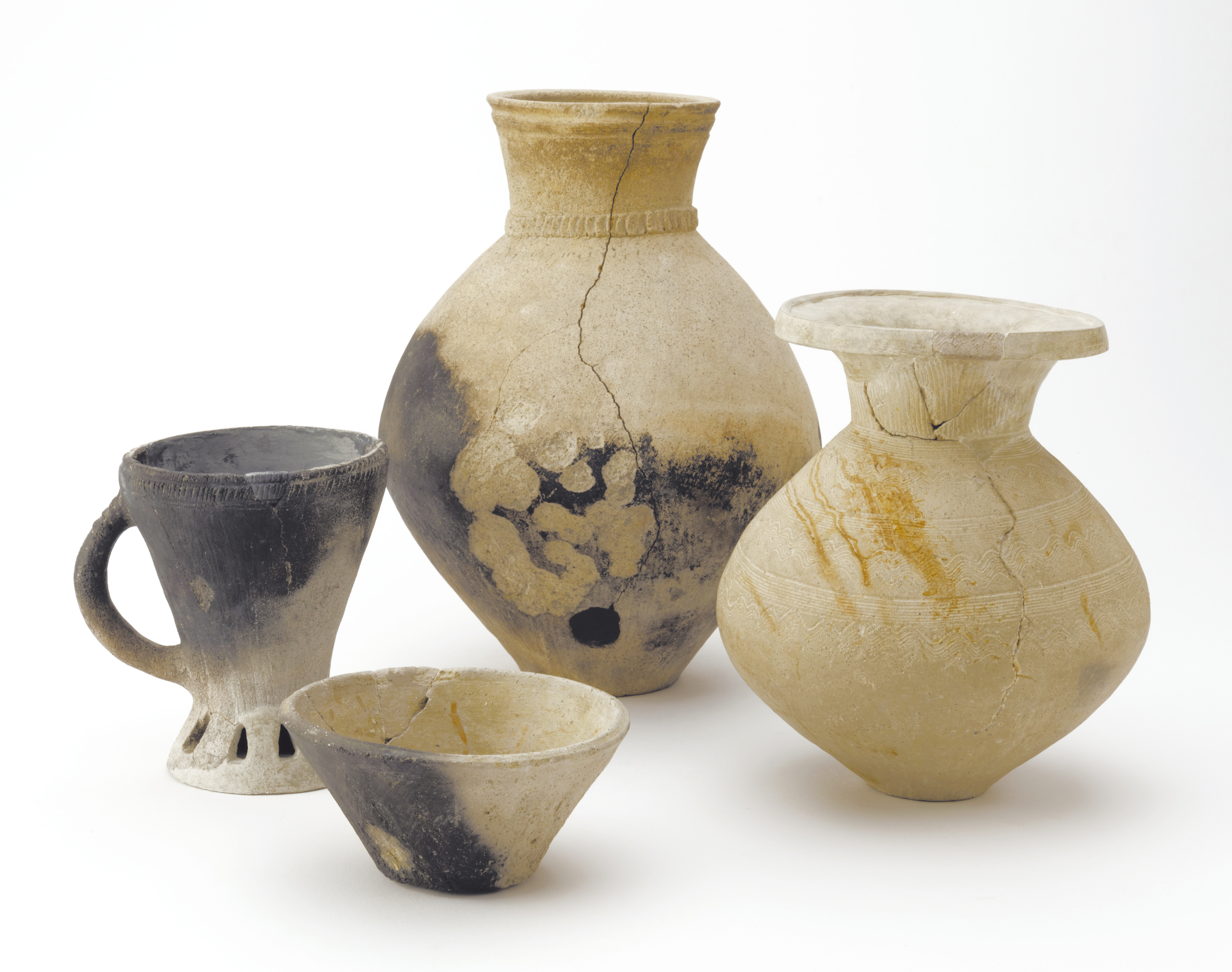 神戸市西区にある玉津田中遺跡の方形周溝墓群で発掘された木棺や土器のほか、棺内で見つかった石鏃(せきぞく)や管玉等を展示。弥生時代の埋葬方法を紹介します。