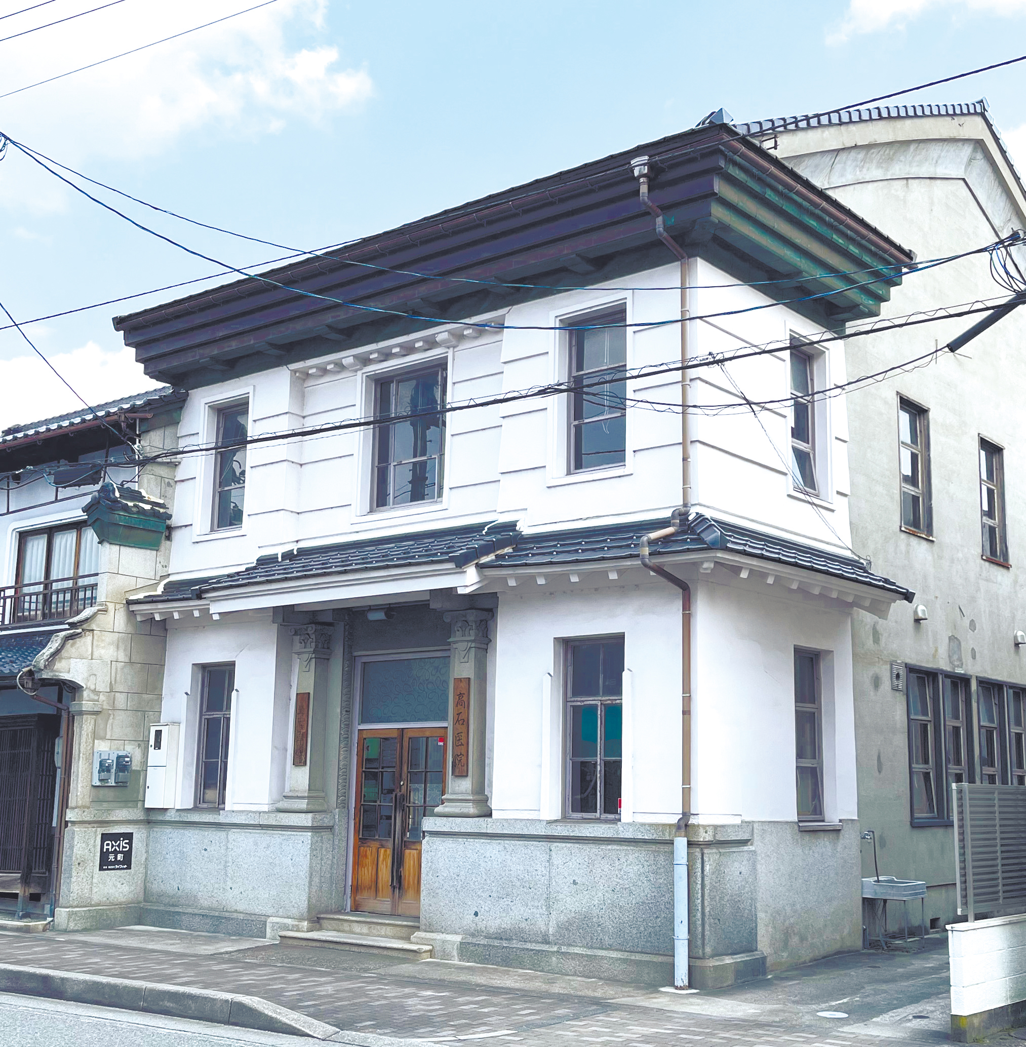 和洋折衷の外観の「旧豊岡貯蓄銀行」は、1階が医院、2階が画廊。
