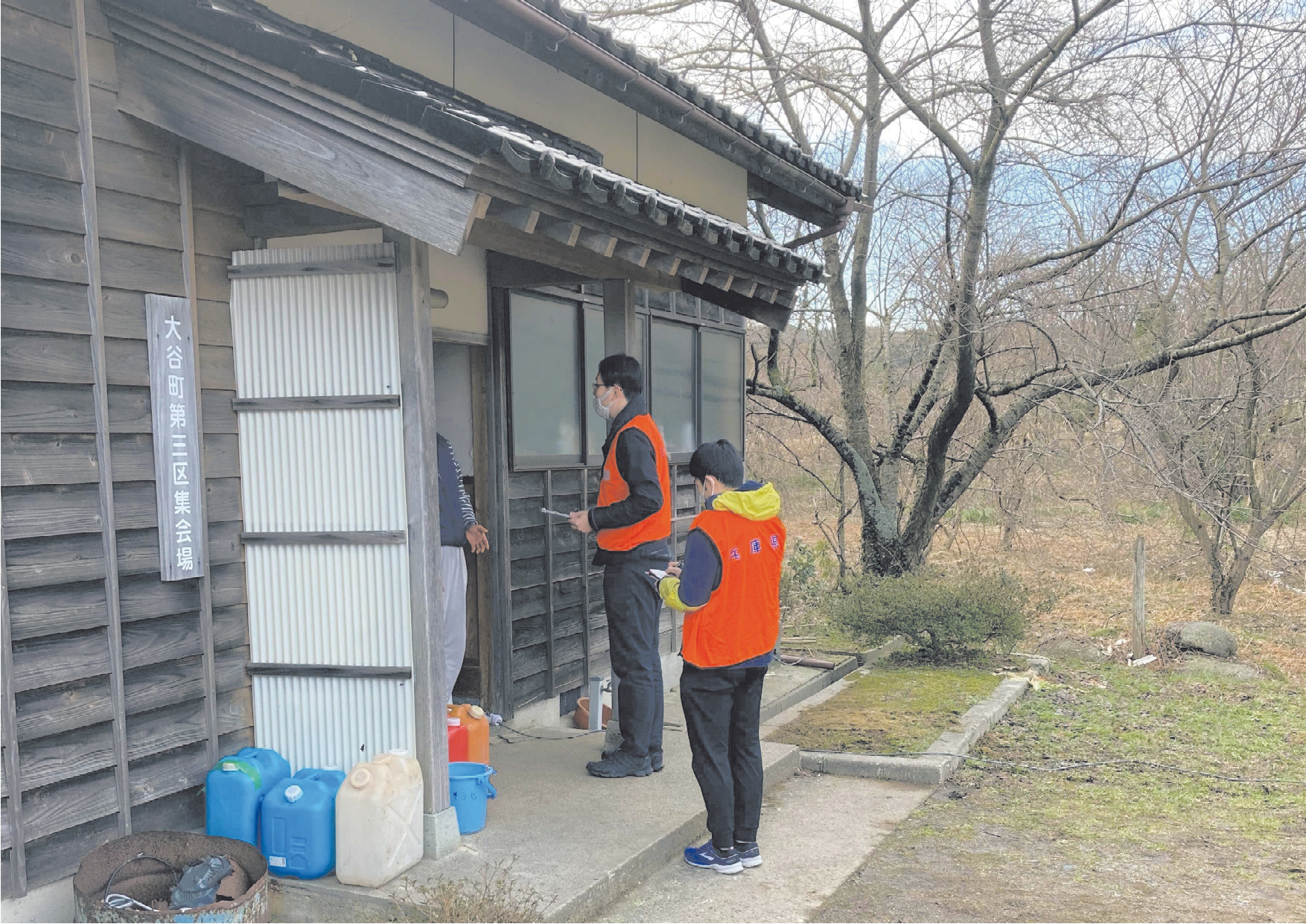 珠洲市大谷地区の住民に聞き取り調査をする様子。