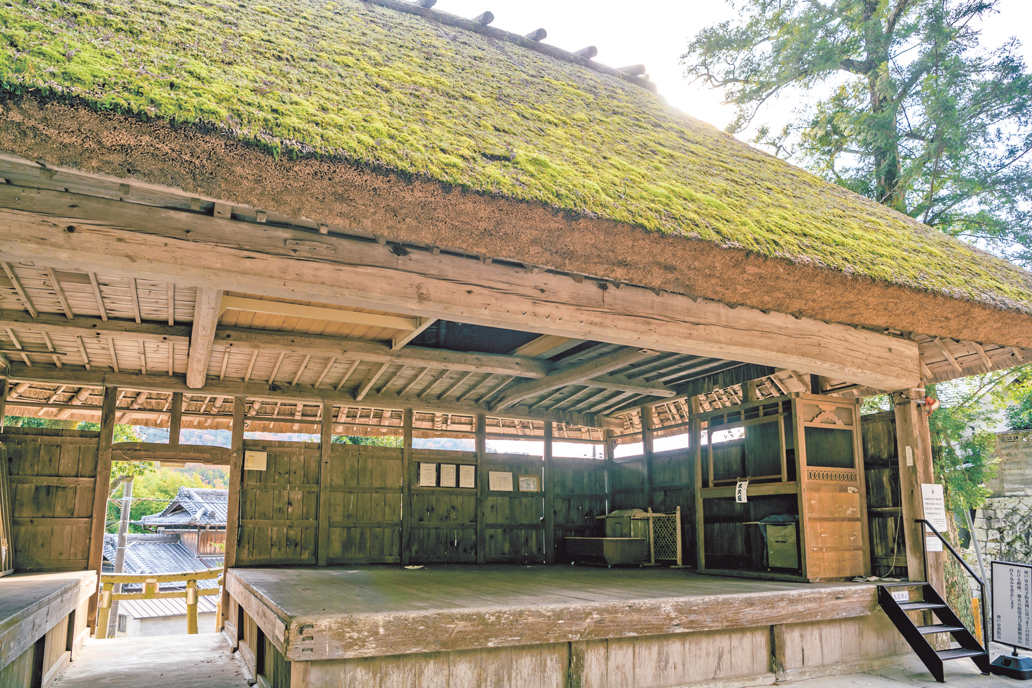 天満神社の境内にある「上谷上農村歌舞伎舞台」は、県指定重要有形民俗文化財です。