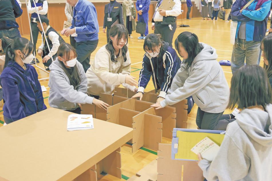 医療職の志望者が多い看護医療・健康類型では、高齢者や障害者といった要配慮者に寄り添えるよう、防災・減災の知識を地域に啓発する活動を展開。フレイル予防に大切な栄養、運動のポイントを踏まえた防災食レシピと体操を考案しました。「体や心の働きが低下するフレイルが進むと避難が困難になるため、日頃から意識してもらうことが狙いです」と、同類型長の福田秀志教諭。地元の防災士や理学療法士などの協力を得ながら完成させ、冊子にまとめて防災関連イベントなどで配布しており、体操は動画をインターネットで公開しています。他にも、市内の福祉避難所をマップ上で“見える化”し増設を提言するなど、学校全体で取り組み、地域の防災力向上に貢献しています。