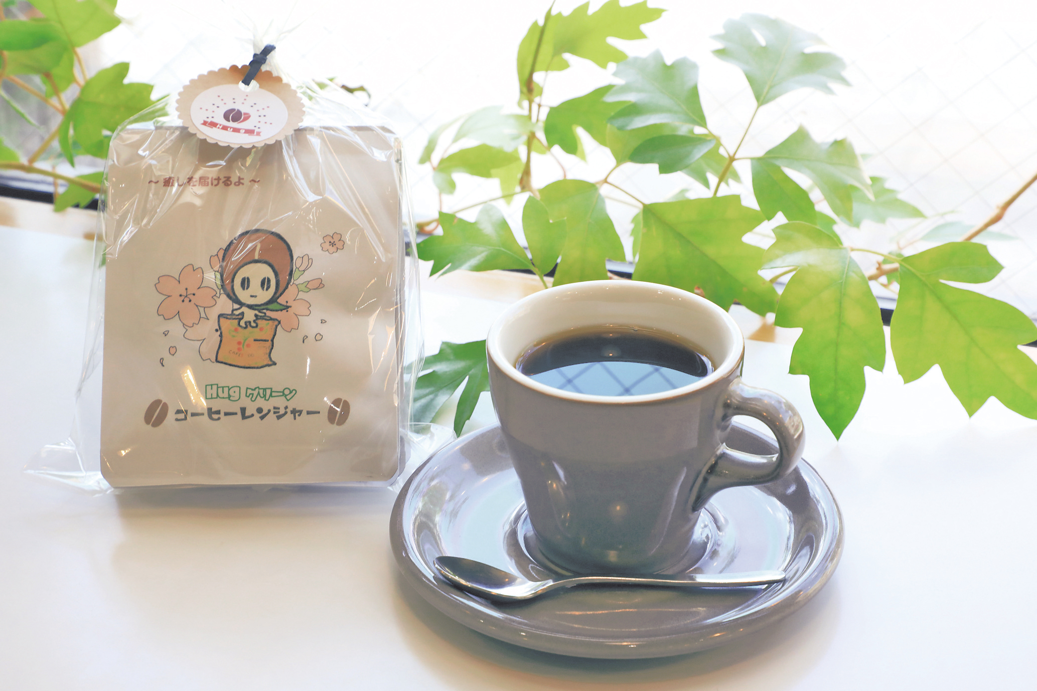 ホットコーヒー(400円)。ドリップバッグ(5袋入り650円)も販売しています。